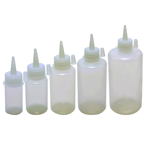 • Azlon plastic dispensing bottles feature a leakproof screw closure