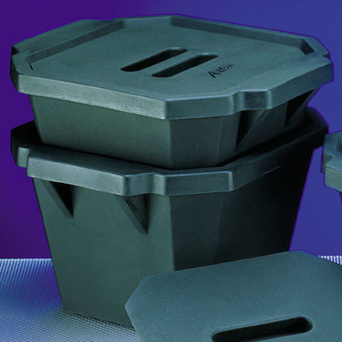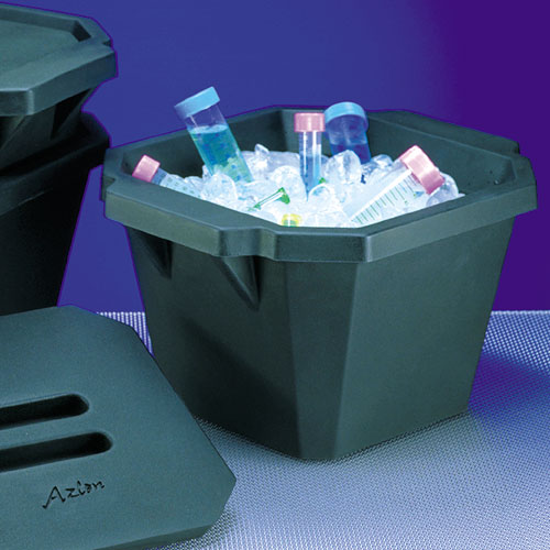 Durable rigid polyurethane skinned-foam construction. Azlon ice bucket has excellent insulating properties, suitable for use with dry ice, water ice and salt solutions. Octagonal design will not deform and is very stable when full. Flush lid with recessed handle means buckets can be stacked for storage.
