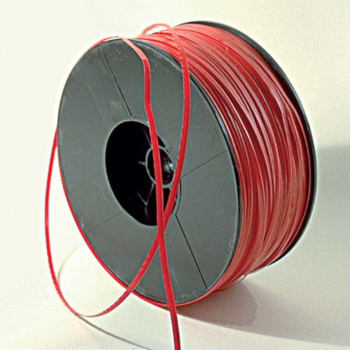 Plastic coated bag ties are extruded of bright red low density polyethylene bonded to an annealed steel wire.
