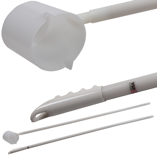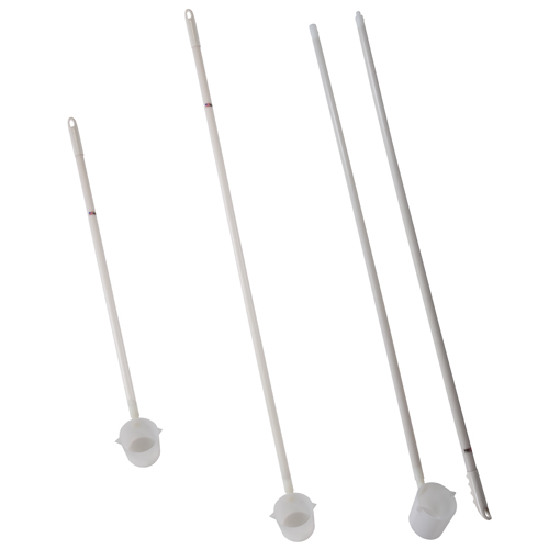 Available in seven popular sizes. 500mL capacity dippers feature graduation markings of 50ml and 1000mL is graduated in increments of 100mL. *12-foot size supplied with 2-piece handle for economy in shipping and storage.