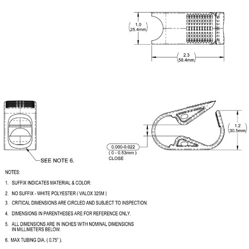 670725 Maxi Polyester Dura-Clamps are designed for on/off control of fluid or air. Features 12 ratchet settings for precise one-hand control. On/off or flow control and economically priced for disposable applications. Maximum tubing O.D. = 0.75 inch (19.05 mm).