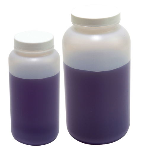 These general purpose bottles are leak proof, and very economical. Closure is made of Polypropylene. Maximum temperature for HDPE 110°C and 121°C for PP closure.