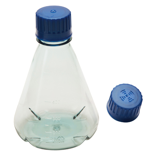 • Each erlenmeyer flask comes sterile via gamma irradiation, packaged in its own protective bag with dual purpose closure. 0.22 um pore size-for sterile air exchange