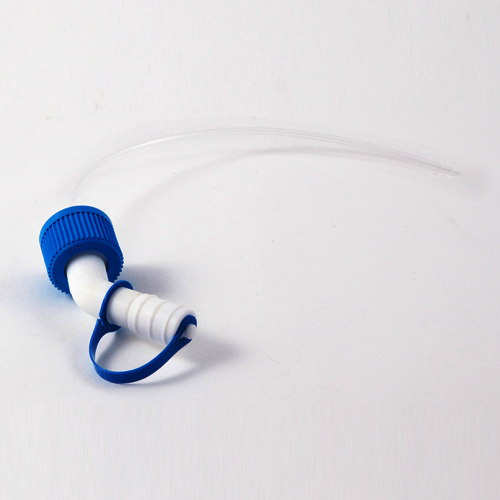 The unique design allows direct and controlled pouring due to the incorporated breather vent. The hazardous chemical bottle pourer comes in four sizes to fit standard reagent bottles with neck sizes of GL30, 32, 38 and 45. A captured PTFE closure prevents vapors from escaping and ensures contaminant free contents when not in use.