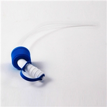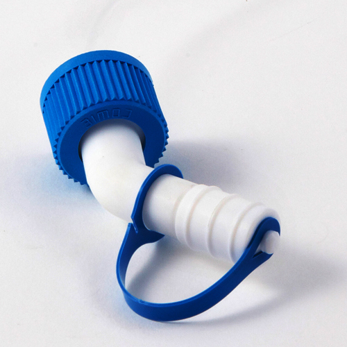 The unique design allows direct and controlled pouring due to the incorporated breather vent. The hazardous chemical bottle pourer comes in four sizes to fit standard reagent bottles with neck sizes of GL30, 32, 38 and 45. A captured PTFE closure prevents vapors from escaping and ensures contaminant free contents when not in use.