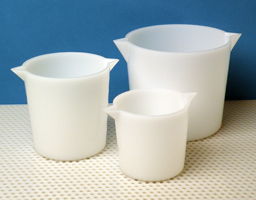 Molded of FDA Approved high density polyethylene resin. These heavy walled graduated beakers are slightly tapered to allow nesting.