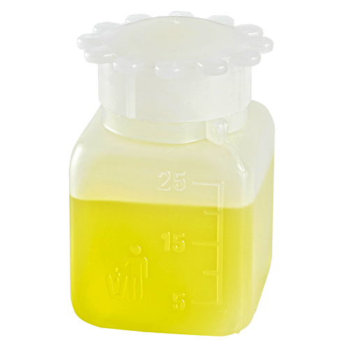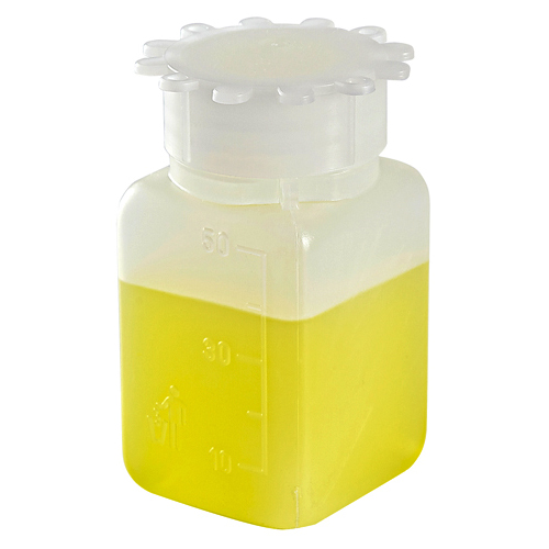 Convenient square Polyethylene bottle design saves space. The integrity of the seal is