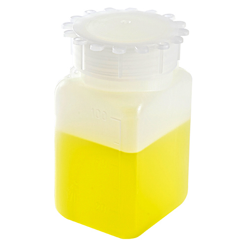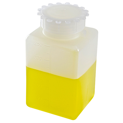 • Graduated plastic square PE bottles are ideal for long term storage of samples