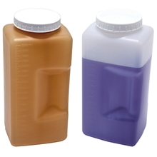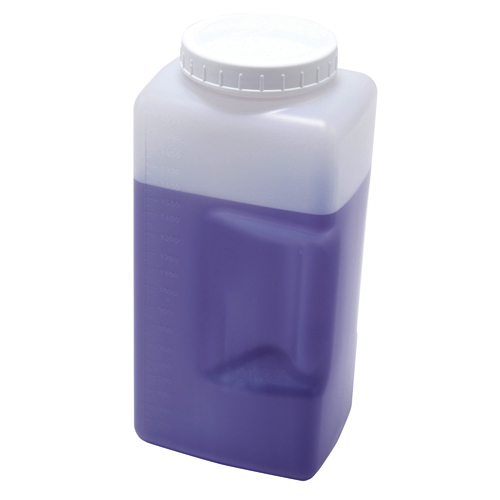 Choice of amber or natural graduated 2 liter HDPE rectangular bottles for space saving storage. Enhanced stability when in use with an ergonomic hand grip allowing for greater ease in pouring. Screw capped and graduated to 2000 mL. Mouth I.D. 75mm