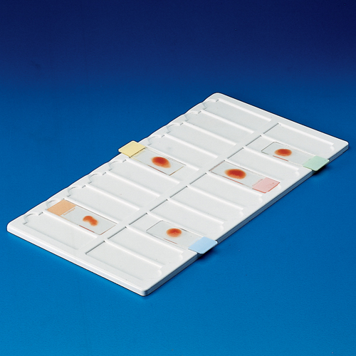 Microscope slide tray for storing of twenty standard slides 25 x 76 mm (1” x 3”). Designed for easy removal of slides.