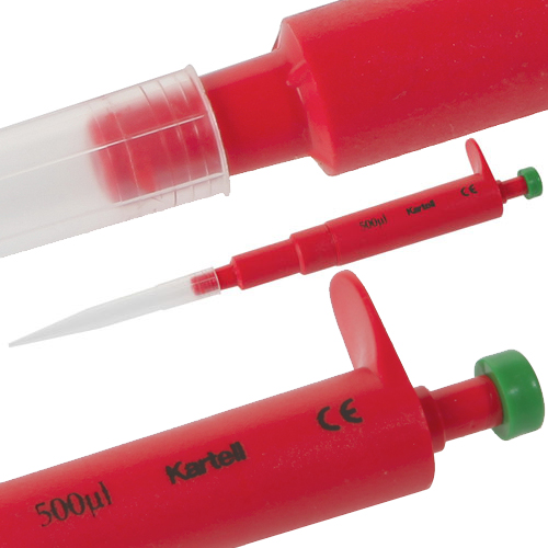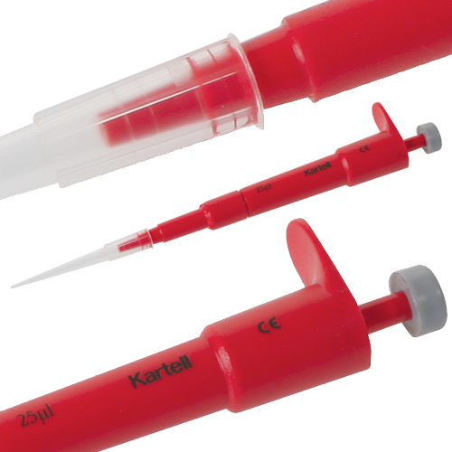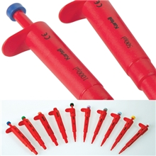 MiniFIX line of fixed volume mini-micropipettes consists of ten pipettes covering the range from 5 uL to 1000 uL. These pipettes feature a compact design, with a length of approximately 13cm, and weight of less than 10g. They are single blister packed, with calibration and performance certification. Each MiniFIX is marked with its volume, and the push button is color coded for easy "volume" identification.