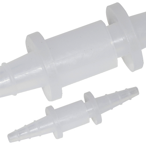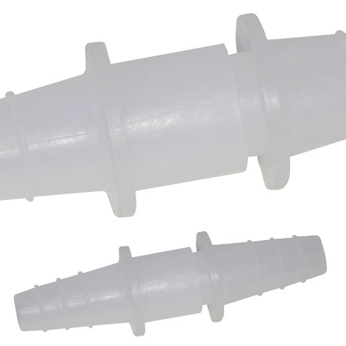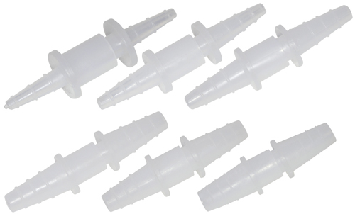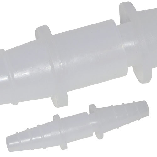 These polyethylene quick disconnects are useful for joining tubing of glass, rubber, or plastic.