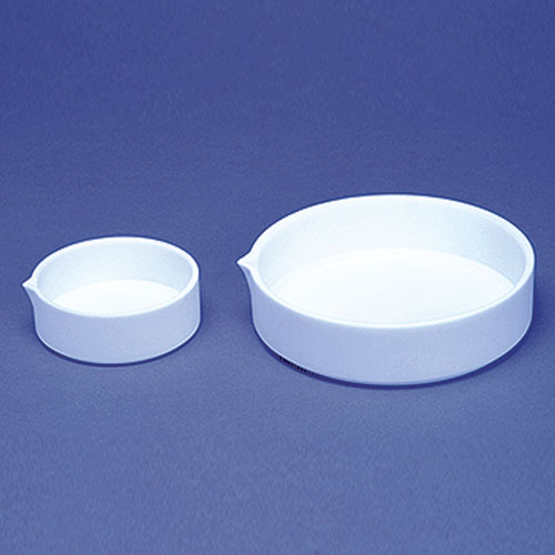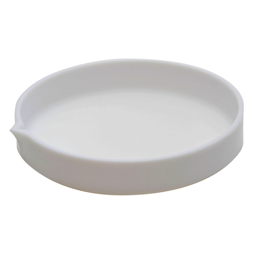 Low form evaporating dishes with pouring spout are manufactured from pure PTFE with heavy wall. Inert and useable to 260ºC. Smooth internal finish.