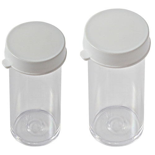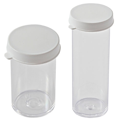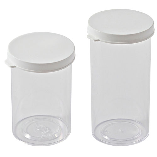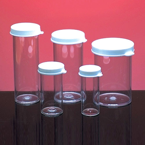 rigid-wall FDA compliant styrene. Sold separately, tight fitting polyethylene snap-on caps are also available in bulk. Plastic snap cap container vials are excellent for storing dry materials, powders, tablets, etc.