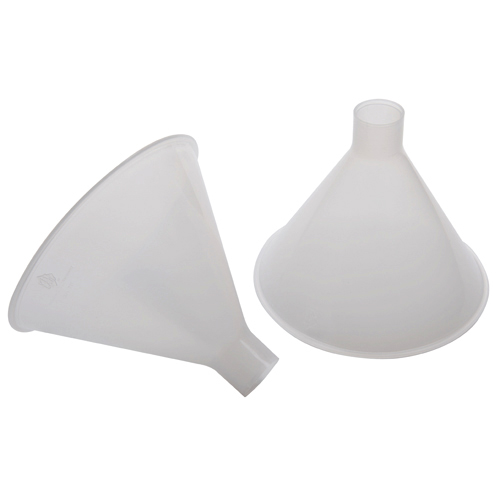 Plastic powder funnels feature a wide stem and are autoclavable. Powder funnels are translucent and allow for the passage of larger particles. Plastic powder funnels are now supplied with a tab at the rim on all sizes except the 150mm powder funnel.