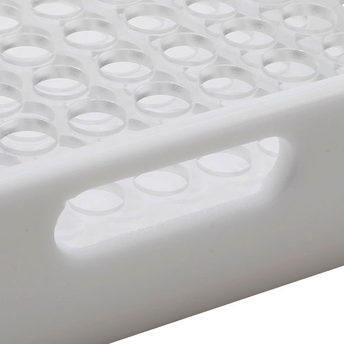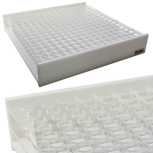 Clear acrylic Refrigerator-Freezer Storage Tube Racks for storage of 16mm specimen tubes for refrigerator or freezer. Refrigerator freezer tube rack allows sufficient space for labeling of individual specimen tubes. Rack is sized to utilize available space efficiently and have hand grips.