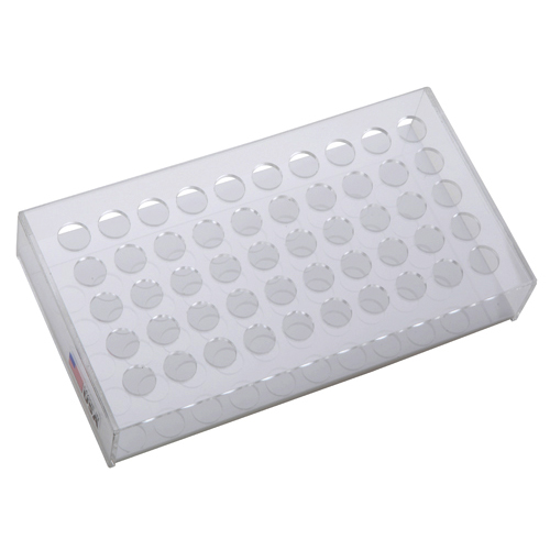 Sample cups storage modules provide storage for hundreds of 13 mm sample cups in less than a square foot of space. Shelves are clear acrylic, base is white. Up to six holders can be stacked.