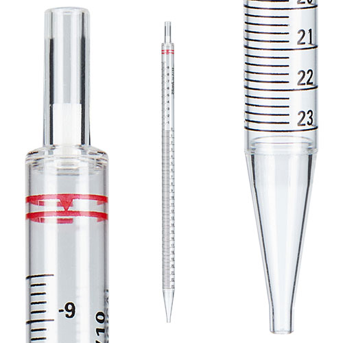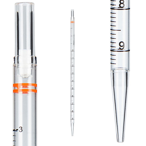 Our rigorous quality specifications and convenient functionality make our serological pipettes an excellent choice for routine laboratory work and cell studies. Bold, clear bidirectional scale makes liquid capacity and sample addition easy to read. A variety of specifications and packaging options are available. Certified scale accuracy and precision calibration ensures +/-2% accuracy in the 1mL and 2mL total volume range and +/-1% accuracy in the 5mL, 10mL, 25mL, 50mL total volume range.