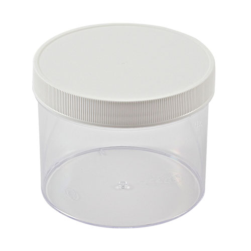 Straight-Side Containers are all supplied with white polypropylene screw closures, these “glass-clear” polystyrene jars have many uses in the lab and industry. Lightweight and easy to fill. Maximum temperature polystyrene is 70°C.