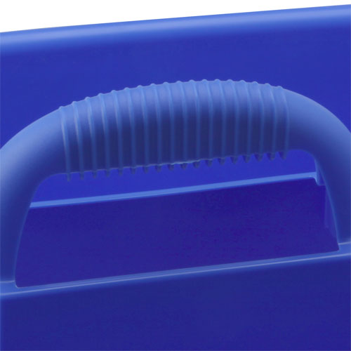 Multi-use blue plastic utility carrier is useful for carrying lab items, bottles, samples, cleaning aids, tools, etc. Utility carrier has a molded-in center division and carrying handle.