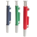 Levo Pipette Controllers shown at left offer precise pipetting and are for use with glass or plastic volumetric and graduated pipettes from 0.1 to 100mL. 4 colors are available for easy identification.