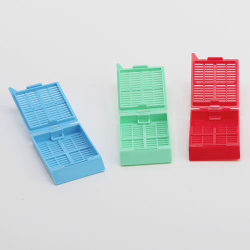 Tissue embedding cassettes are available in six colors and delivered in cases of 500 pieces.
