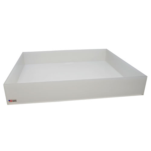 Heavy plastic spill containment trays are fabricated with 3/16” thick polypropylene or 1/4”high density polyethylene and feature an all welded construction. Dimensions listed are inner (I.D.).