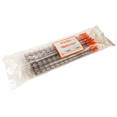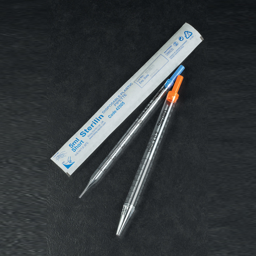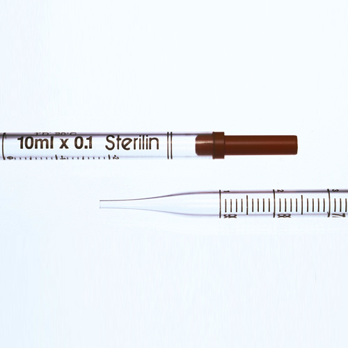 Crystal grade polystyrene is used for consistency in manufacture and maximum clarity, with easy to read crisp black printed graduations enabling the graduated pipettes to be used accurately to +/-1%. Sterility is guaranteed by gamma radiation at a license holding irradiation plant, which follows the relevant recommendations in the DHSS Guide to Good Manufacturing Practice for Sterile Medical Devices and Surgical Products. Sterilin graduated pipettes are tested for pyrogencity, and have a pyrogen level of less than 0.25 EU/ml.