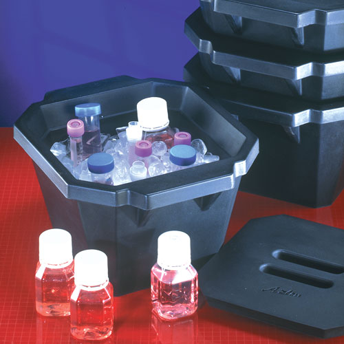 Durable rigid polyurethane skinned-foam construction. Azlon ice bucket has excellent insulating properties, suitable for use with dry ice, water ice and salt solutions. Octagonal design will not deform and is very stable when full. Flush lid with recessed handle means buckets can be stacked for storage.