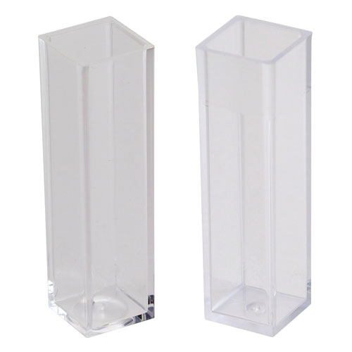 Cuvettes for spectrophotometry application in the visible spectrum. Clear and sharp optical path with indication of the optical path direction. They are made of optical PS and UV grade PMMA and are equipped with optically machined walls (optical faces) to ensure optimal transparency along the spectral field from 340 to 800 nm (optical PS) and from 280 to 800 nm (UV grade PMMA).