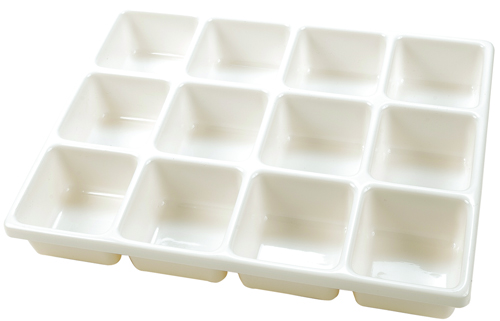 Plastic organization trays are very sturdy. Use for carrying items such as stir bars, connectors etc. Useful for knick knacks - rulers, erasers, pencils etc, in desk drawers. Central compartment of five cavity tray can be used for pipettes.