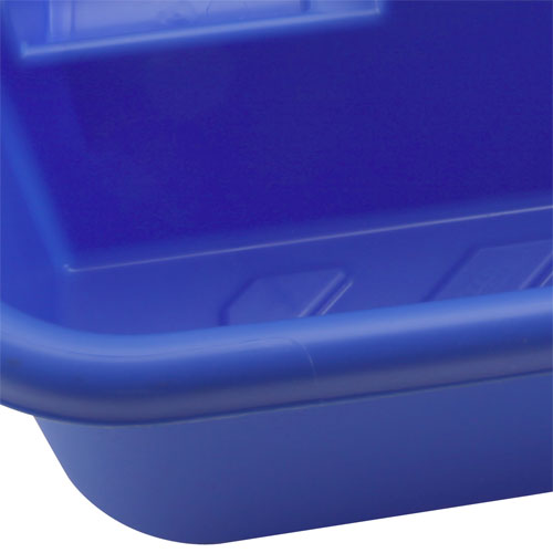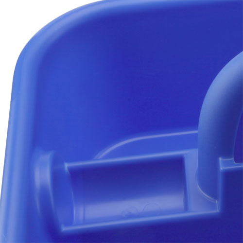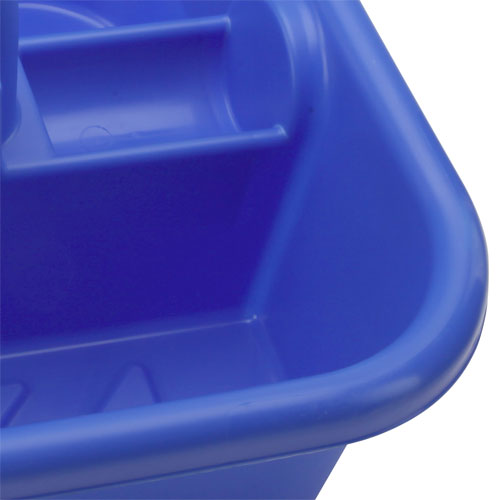 Multi-use blue plastic utility carrier is useful for carrying lab items, bottles, samples, cleaning aids, tools, etc. Utility carrier has a molded-in center division and carrying handle.