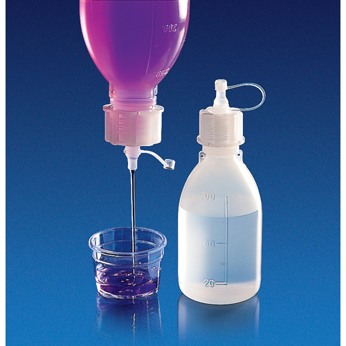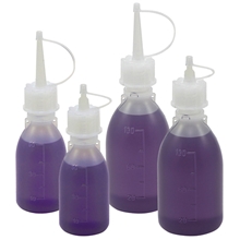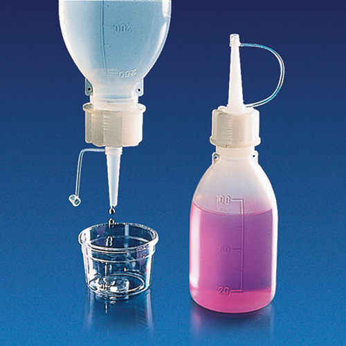 An ideal LDPE bottle for water and oils - there are no shoulders on these spout dropping bottles to restrict the flow. Graduated and can be secured using shoulder and cap tag to avoid sample contamination in transit. Conforms to DlN 13316 and 168. Supplied with LDPE cap for tip closure.
