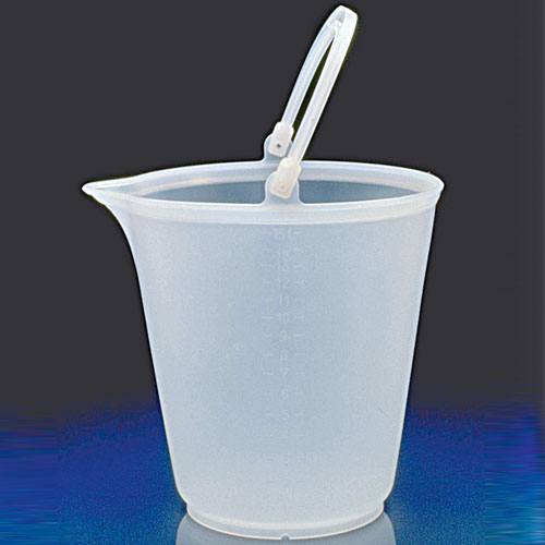 Plastic pail is graduated in one liter increments. Autoclavable.