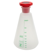 Heavy walled, the Azlon plastic Erlenmeyer plastic flask pictured at left is autoclavable with a tooled neck. Supplied complete with polypropylene stoppers, they feature temperature characteristics and approximate graduations are clearly and indelibly printed on each flask.