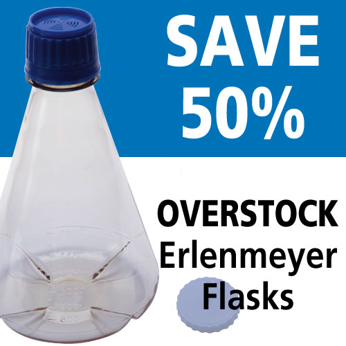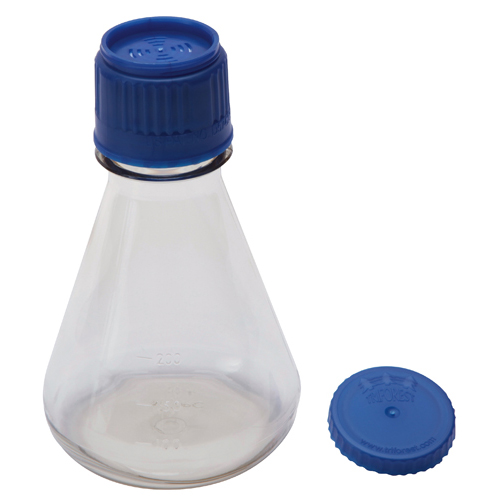 • Each erlenmeyer flask comes sterile via gamma irradiation, packaged in its own protective bag with dual purpose closure. 0.22 um pore size-for sterile air exchange