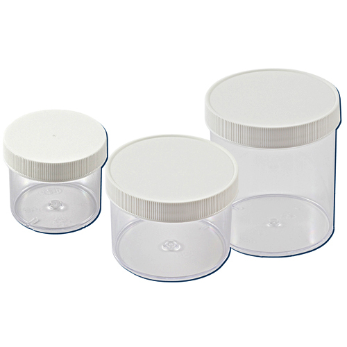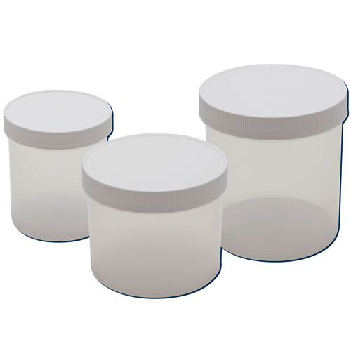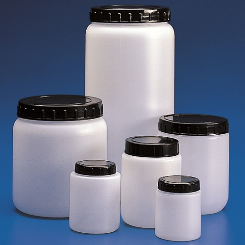 Cylindrical HDPE jars are supplied with an insert and PP cap. Thanks to the large neck, these plastic container jars are suitable for powders and solid specimens. All sizes are