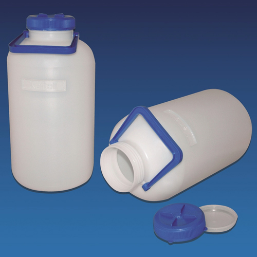Heavy walled wide mouth plastic carboy HDPE with neck insert is ideal for liquid or powders. Made from food grade chemical resistant HDPE with LDPE neck insert plug that provides maximum security. Blue handle and closure are Polypropylene.